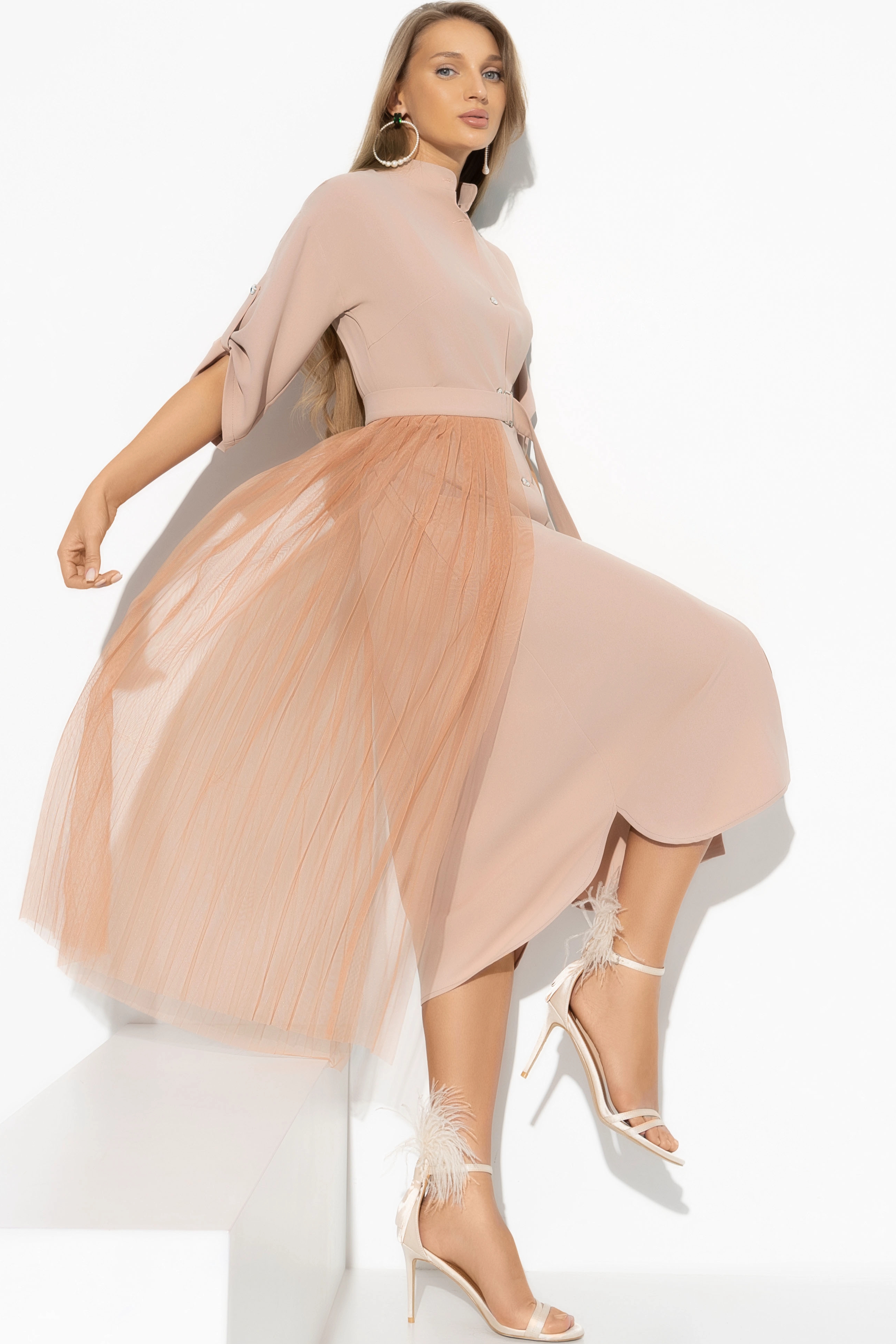 Бежевое платье-рубашка со съёмной баской
