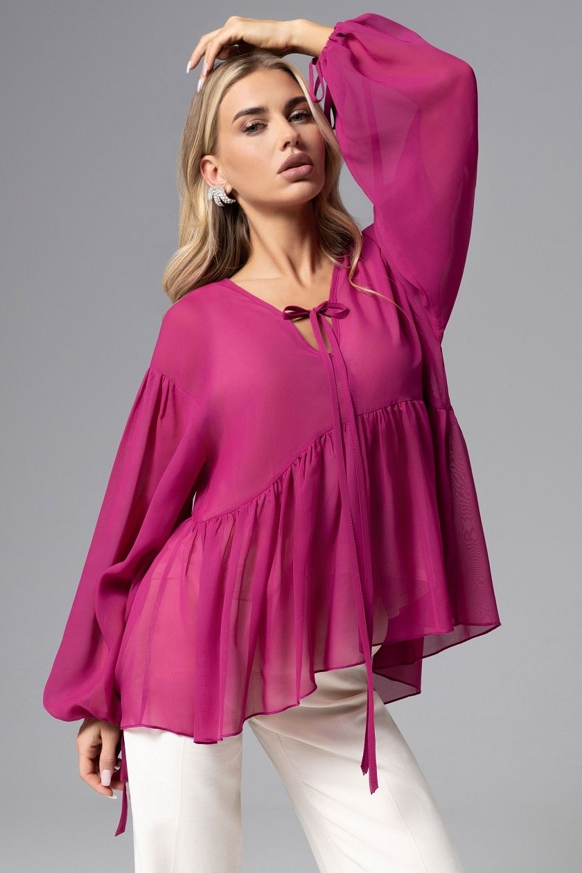 Блузка шифоновая в стиле бохо в цвете фуксия