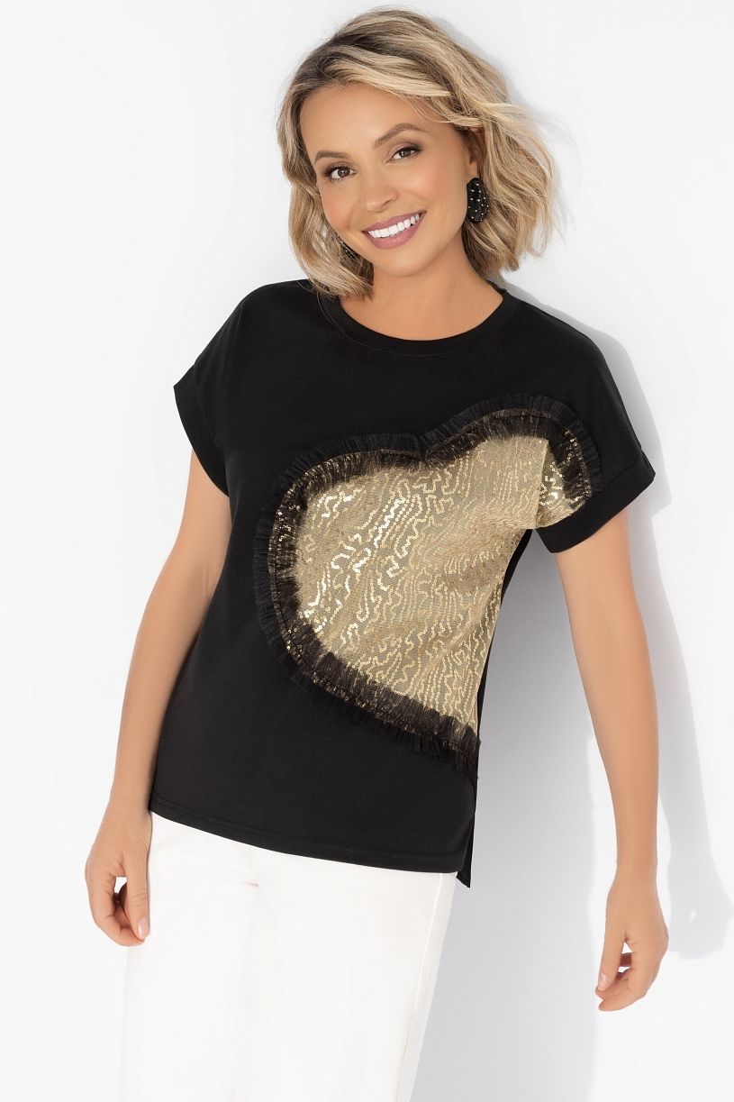 Футболка чёрная с декором из пайеток