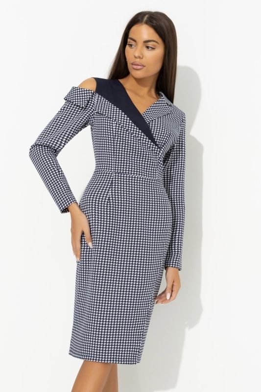 Платье-футляр синее с юбкой на запах от компании Charutti. Модель прилегающего силуэта, выполнена из костюмного полотна "барби" . Асимметричный крой верхней части платья с имитацией многослойности. Вырез на одном плече. Запах юбки изделия формирует глубокий вырез. Это больше, чем платье.