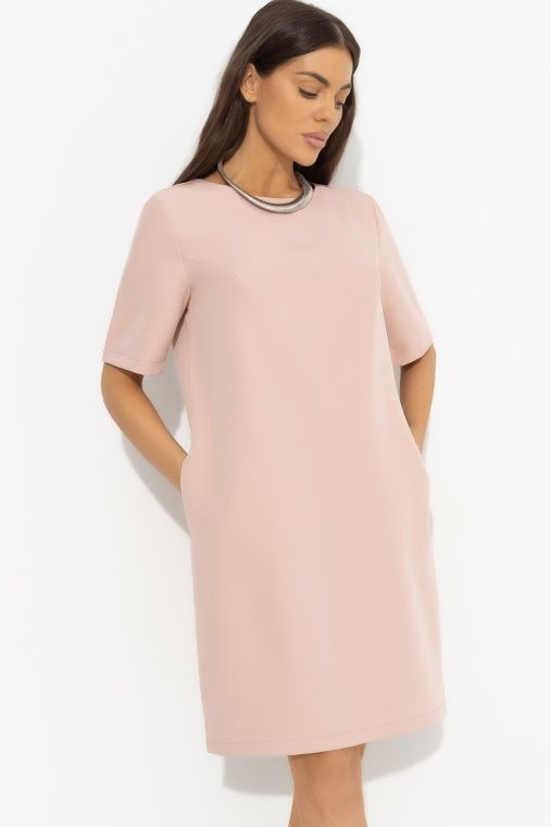 Платье розовое с карманами от компании Charutti. Модель прямого силуэта, выполнена из костюмного ткани "барби". Круглый вырез горловины. Втачной короткий рукав. Это Ваш отличный образ, в котором вы всегда чувствуете себя уверенно.