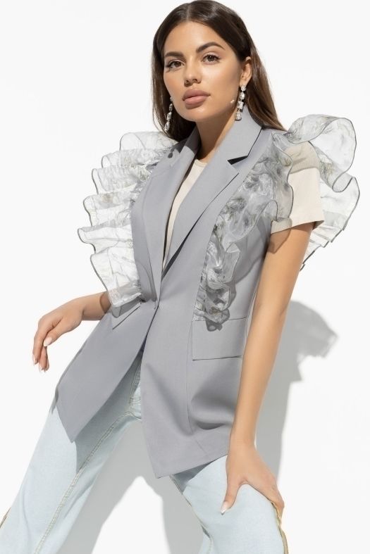 Чёрный трикотажный джемпер с воланом из органзы Ханес №1