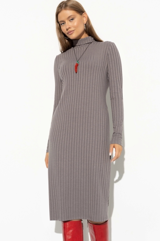 Платье коричневое в рубчик
