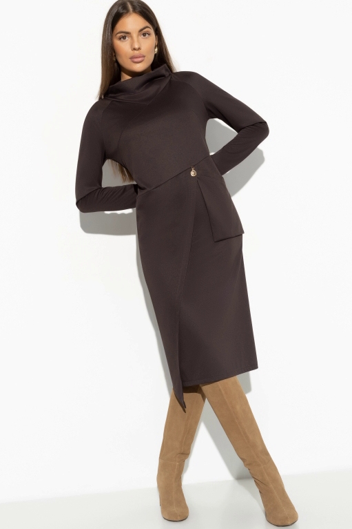 Платье миди коричневое с карманом