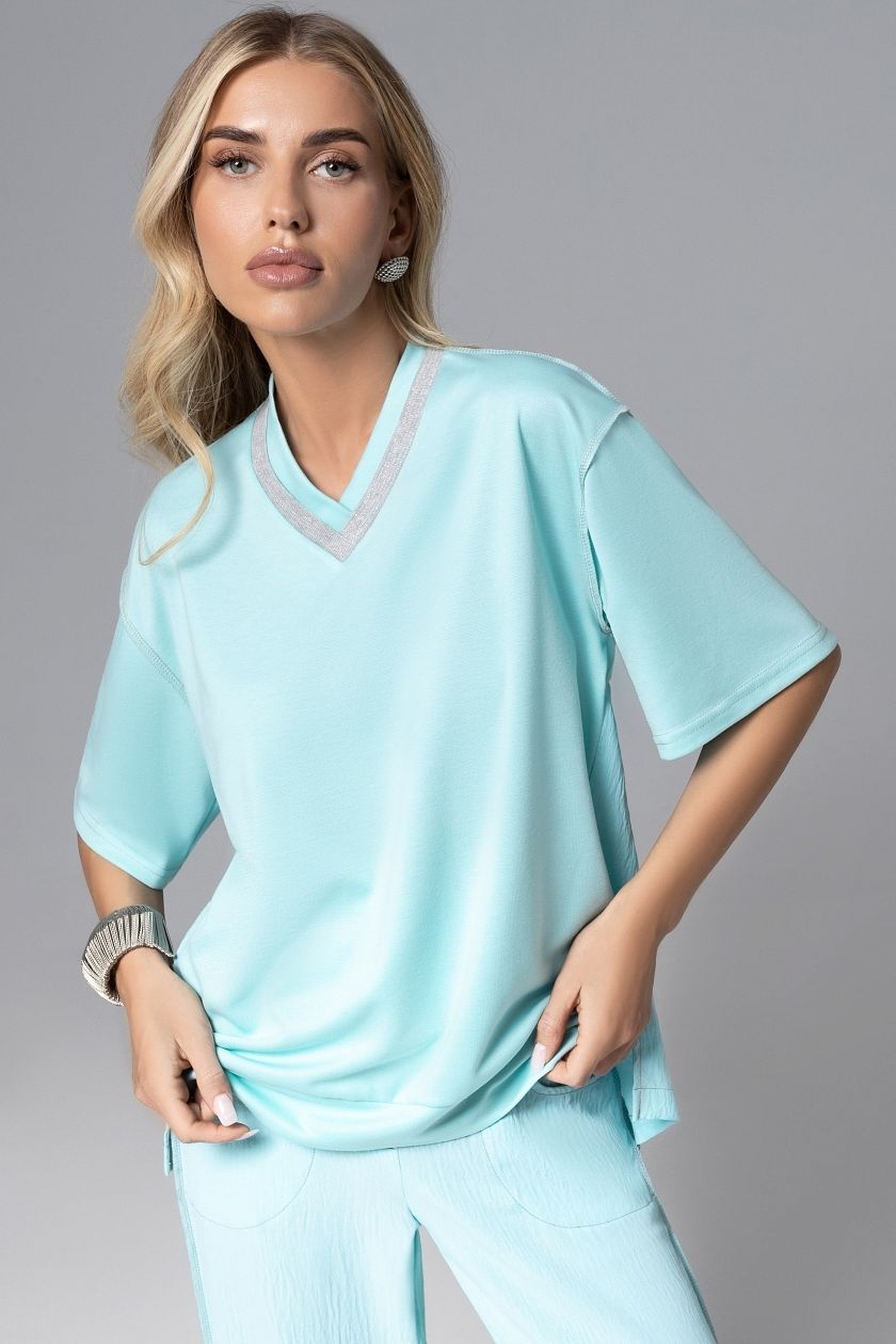 Рубашка из вельвета сине-зелёная с накладными карманами