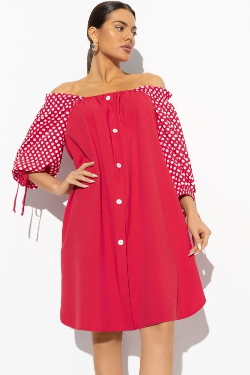 Платье красное в горох