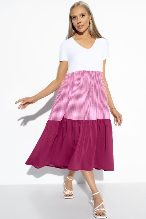 Рубашка в зелёно-оранжевую клетку с накладным карманом