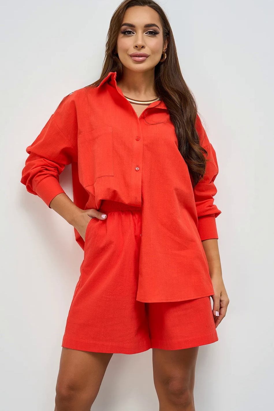 Шорты красные с карманами