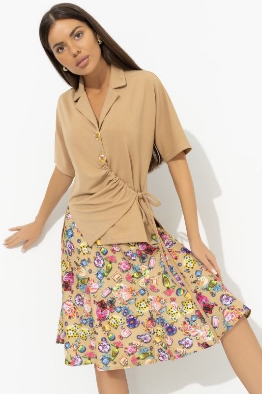 Костюм-двойка бежевый с юбкой