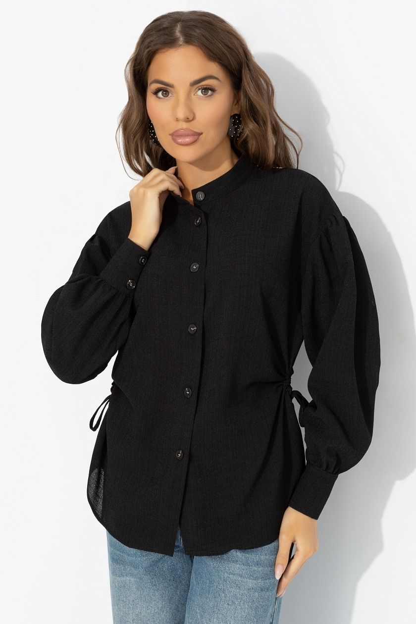 Рубашка чёрная с акцентной спинкой и сборками