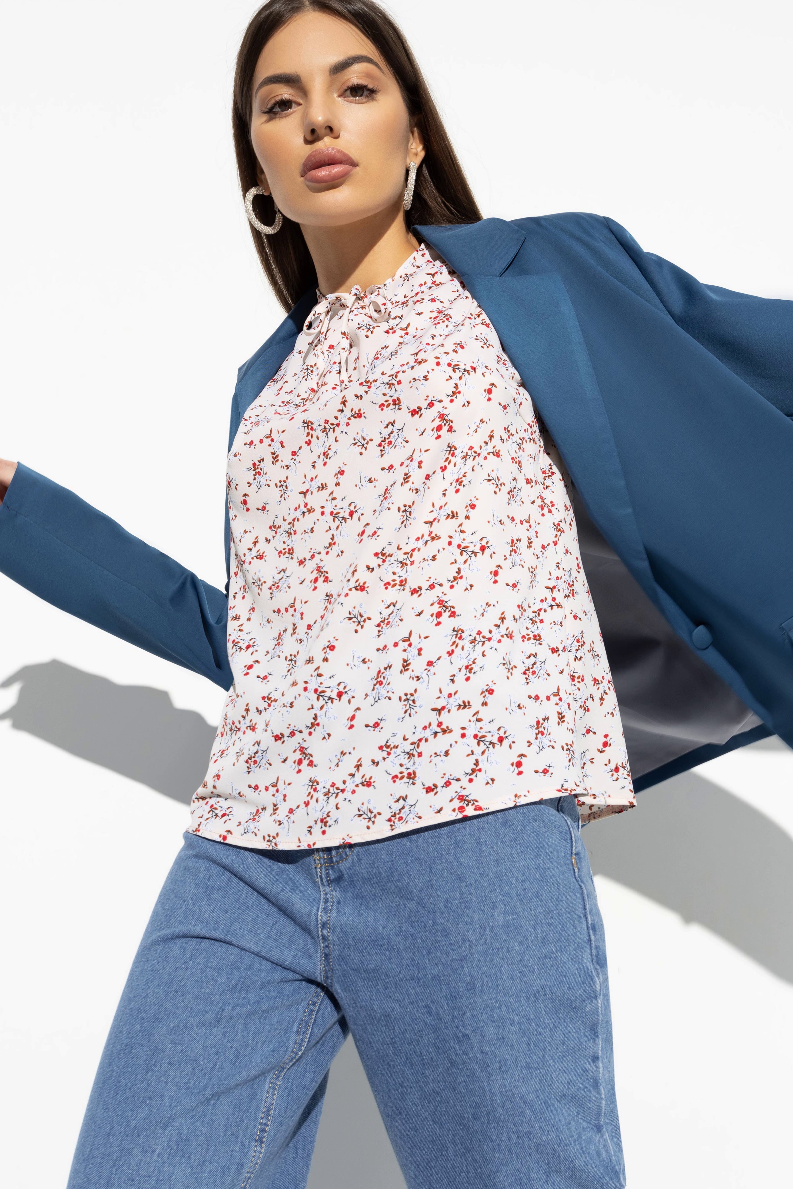 Бежевая блузка с цветочным принтом от компании Charutti. Модель прямого силуэта, выполнена из плательной ткани "ниагара". Круглый вырез горловины с разрезом-капелька и завязками. Без рукавов. Низ ровный, без разрезов. Отличный выбор для создания эффектного образа.
