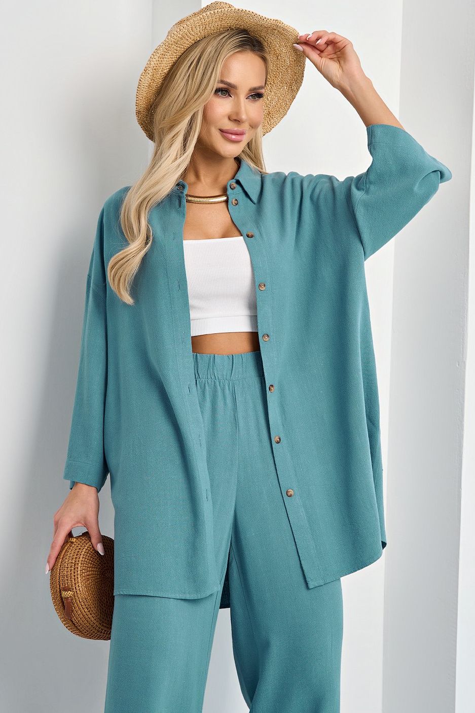 Рубашка льняная свободная