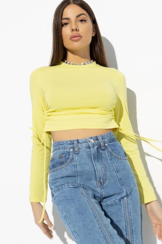 Укороченный жёлтый лонгслив с кулисками и завязками по бокам