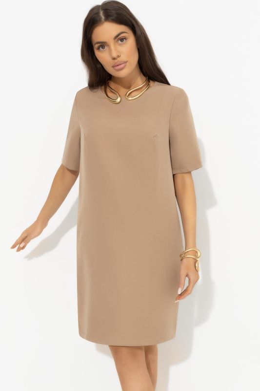Платье бежевое с карманами от компании Charutti. Модель прямого силуэта, выполнена из костюмного ткани "барби". Круглый вырез горловины. Втачной короткий рукав. Это Ваш отличный образ, в котором вы всегда чувствуете себя уверенно.