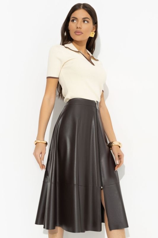 Юбка коричневая из экокожи на молнии от компании Charutti. Модель свободного силуэта, притачной пояс. Идеальный выбор для создания стильного образа.